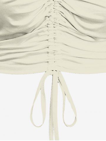 Plus Size Cold Shoulder Puff Sleeve Solid Cinched Top - Crystal Cream - M