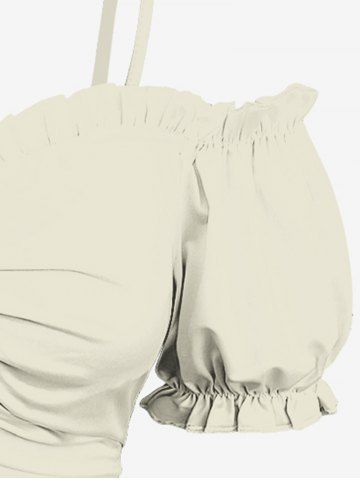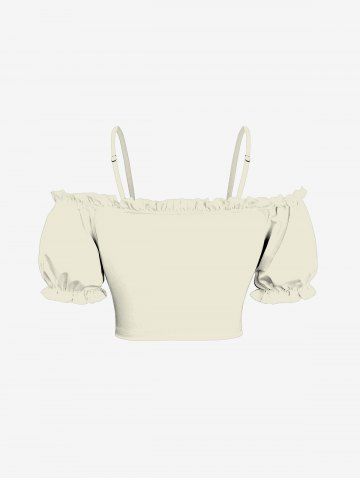 Plus Size Cold Shoulder Puff Sleeve Solid Cinched Top - Crystal Cream - L