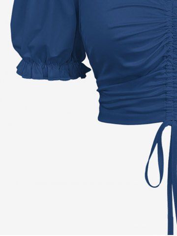 Plus Size Cold Shoulder Puff Sleeve Solid Cinched Top - Blue - L