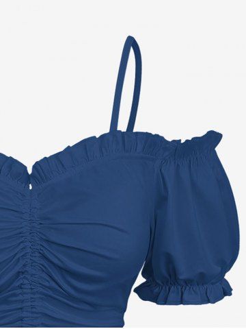 Plus Size Cold Shoulder Puff Sleeve Solid Cinched Top - Blue - 1x