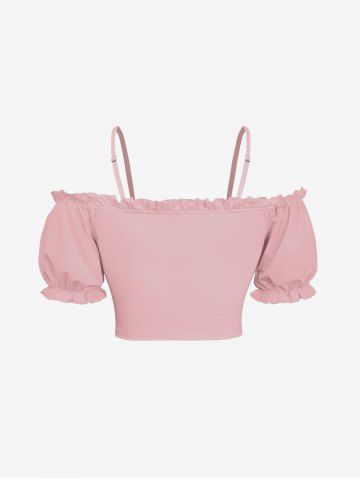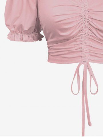 Plus Size Cold Shoulder Puff Sleeve Solid Cinched Top - Light Pink - 6x