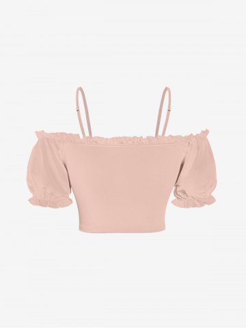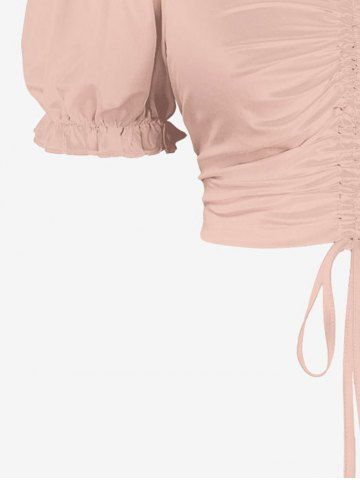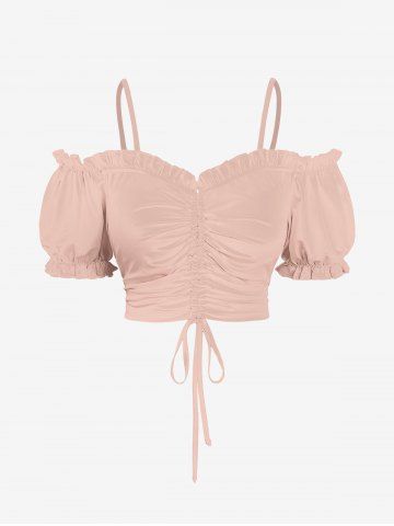 Plus Size Cold Shoulder Puff Sleeve Solid Cinched Top - Light Pink - M