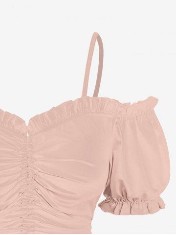 Plus Size Cold Shoulder Puff Sleeve Solid Cinched Top - Light Pink - 2x