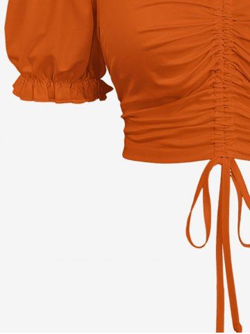 Plus Size Cold Shoulder Puff Sleeve Solid Cinched Top - Orange - 2x