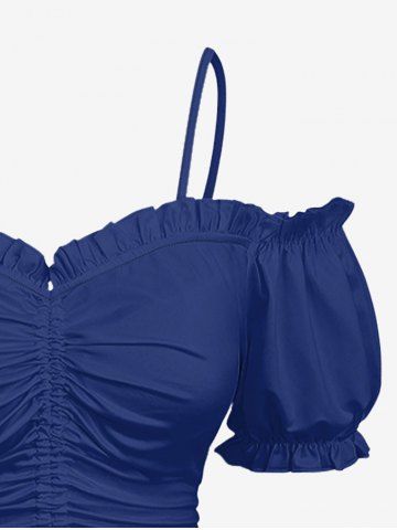 Plus Size Cold Shoulder Puff Sleeve Solid Cinched Top - Navy Blue - 6x