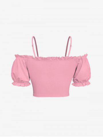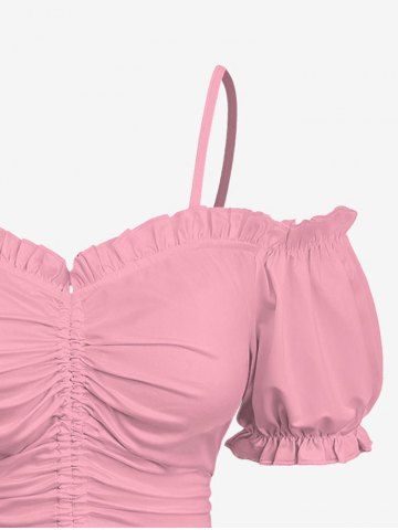 Plus Size Cold Shoulder Puff Sleeve Solid Cinched Top - Pink - 6x
