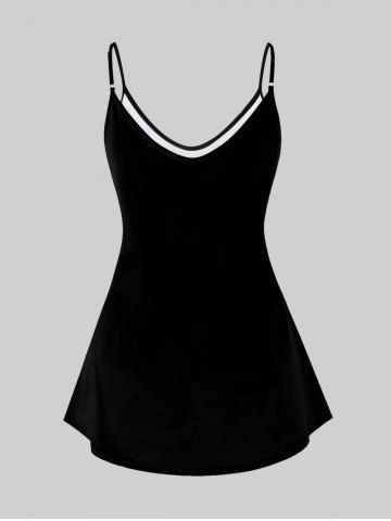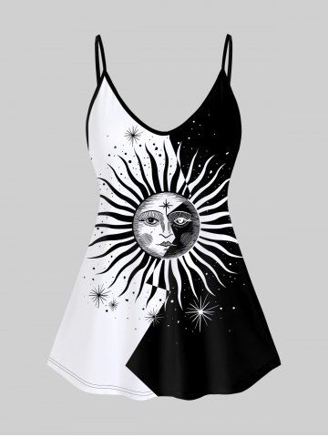 Plus Size Colorblock Sun Glitter Print Cami Top (Adjustable Shoulder Strap) - Black - S | Us 8