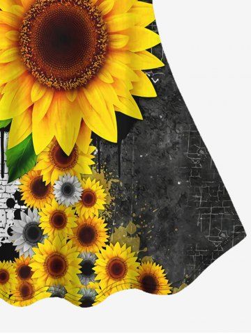 Plus Size Colorblock Sunflower Print Lace Back Tank Top - Black - 4x