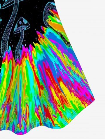Graphic Tanks > Plus Size Contrast Lace Panel Holography Mushroom Printed Tank Top