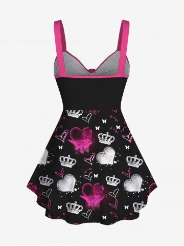 Graphic Tanks > Plus Size Crown Heart Butterfly Print Cinched Tank Top