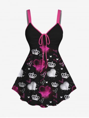 Graphic Tanks > Plus Size Crown Heart Butterfly Print Cinched Tank Top