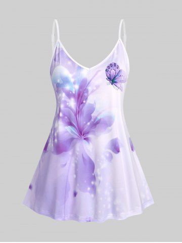 Graphic Tanks > Plus Size & Curve Butterfly Floral Print Flowy Cami Top