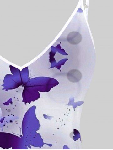 Plus Size & Curve Butterfly Print Flowy Summer Top - White - 2xl