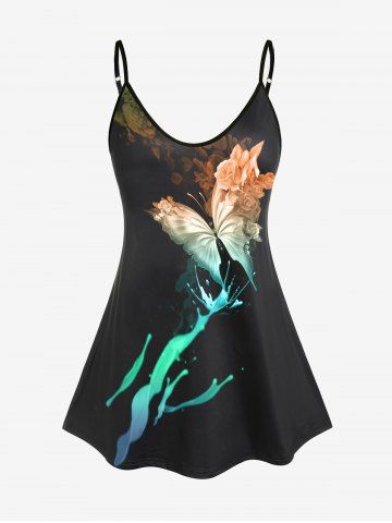 Graphic Tanks > Plus Size & Curve Butterfly Splatter Paint Cami Top (Adjustable Straps)