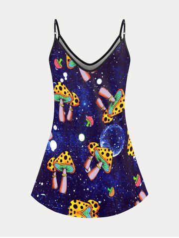 Plus Size & Curve Galaxy Mushroom Print Flowy Tank Top - Blue - 5xl