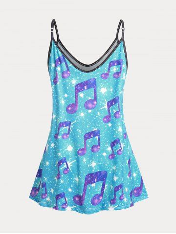 Plus Size & Curve Galaxy Musical Notes Print Tank Top - Light Blue - 3xl