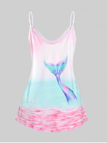 Ombre Mermaid Print Tank Top and High Waist Galaxy Capri Leggings Plus Size Summer Outfit