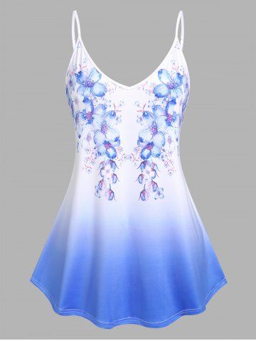 Graphic Tanks > Plus Size & Curve Ombre Color Floral Print Tank Top