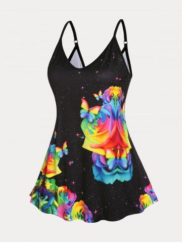 R*****r5Plus Size & Curve Rainbow Rose Butterfly Print Flowy Cami Top (Adjustable Straps)Color: BLACK Size: 3XLI seen This Top and I so had to order it fits wonderfully if my mom was still here she would also love it she is The Main Reason why I now love to shop on RoseGal