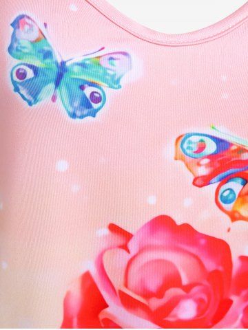 Plus Size & Curve Rose Butterfly Ombre Tank Top - Multi - 2xl