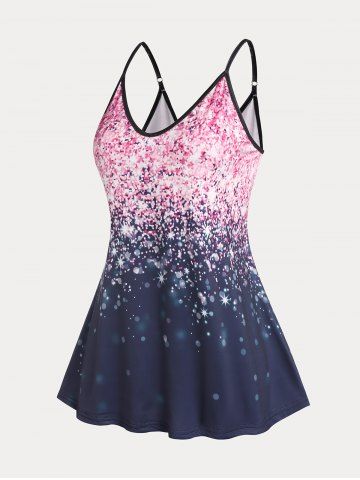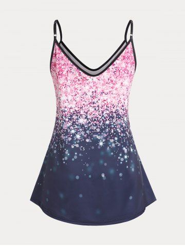 x*****x4Plus Size & Curve Sparkling Starlight Print Flowy Tank TopColor: DEEP BLUE Size: 3XLI love this shirt but was thrown off by the fact that the graphics are very zoomed in blurry. I was expecting the shirt to have actual sparkles.
