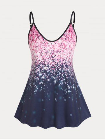 x*****x4Plus Size & Curve Sparkling Starlight Print Flowy Tank TopColor: DEEP BLUE Size: 3XLI love this shirt but was thrown off by the fact that the graphics are very zoomed in blurry. I was expecting the shirt to have actual sparkles.