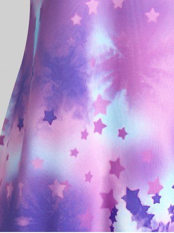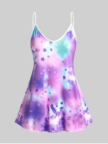 Plus Size & Curve Stars Print Tie Dye Tank Top - Purple - Xl