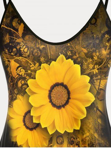 Plus Size & Curve Sunflower Printed Tank Top - Black - 5xl