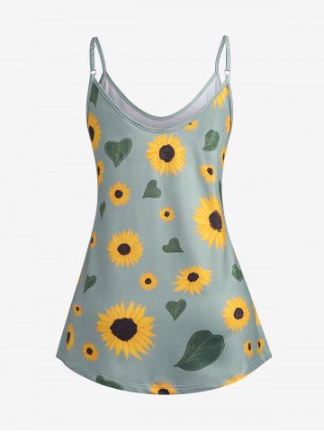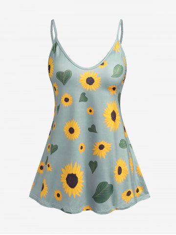 Plus Size & Curve Sunflower Tank Top - Light Green - 4xl