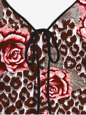 Plus Size Floral Leaf Colorblock Print Cinched Tank Top