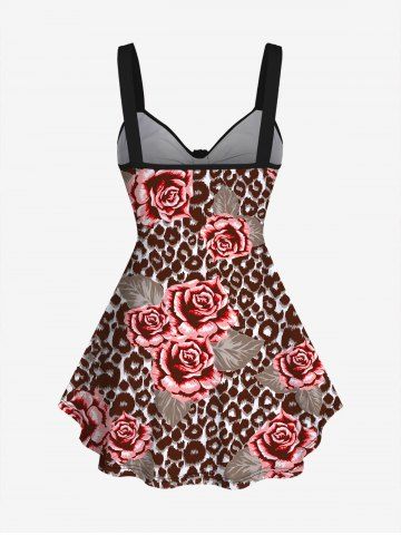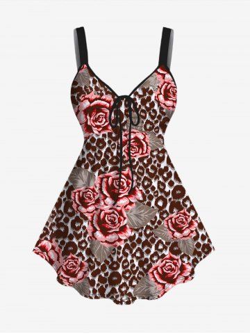 Plus Size Floral Leaf Colorblock Print Cinched Tank Top