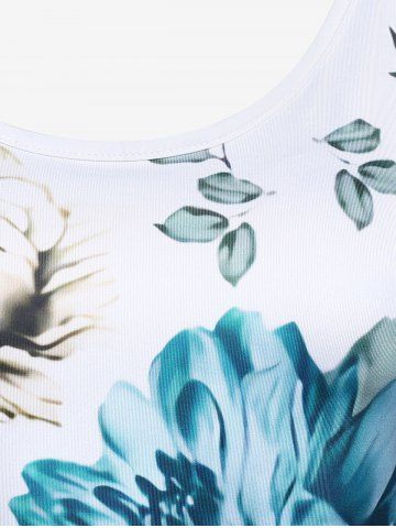 Plus Size Floral Print Lace Panel Tank Top - Deep Blue - 3x | Us 22-24