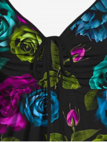 Plus Size Flower Print Cinched Tank Top - Black - 2x