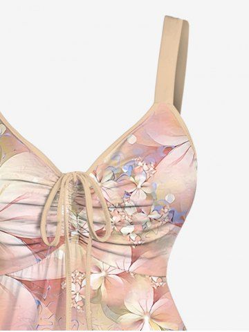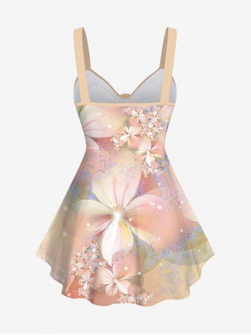 Plus Size Flowers Glitter 3D Print Cinched Tank Top - Beige - M