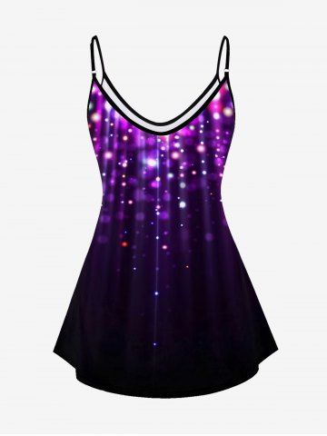 Plus Size Glitter Print Cami Top (Adjustable Shoulder Strap) - Purple - 3x