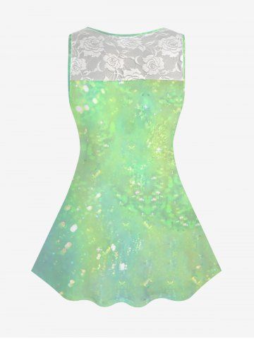 Plus Size Glitter Sparkling Ombre Lucky Four Leaf Clover Floral Lace Print Sleeveless Tank Top - Green - 5x