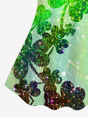 Plus Size Glitter Sparkling Ombre Lucky Four Leaf Clover Floral Lace Print Sleeveless Tank Top - Green - 6x