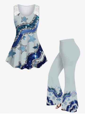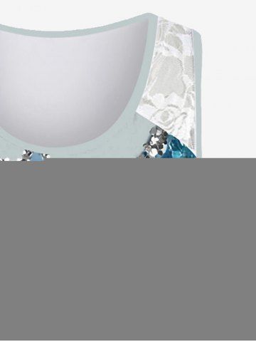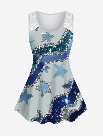 Graphic Tanks > Plus Size Glitter Sparkling Sequins Striped Stars Lace Print Tank Top