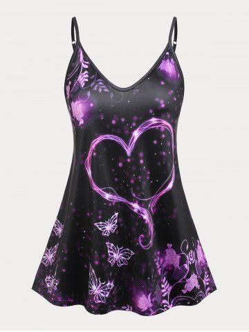 Graphic Tanks > Plus Size Heart Butterfly Print Cami Top