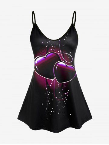 Plus Size Heart Printed Ombre Tank Top - Black - Xl