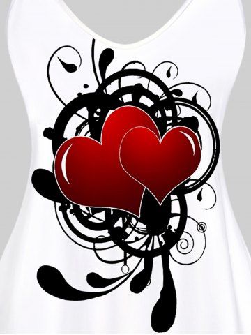 Plus Size Heart Printed Tank Top - White - 2xl
