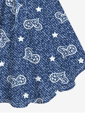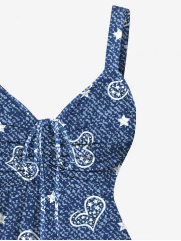 Plus Size Heart Stars Denim Print Cinched Tank Top - Blue Gray - 6x