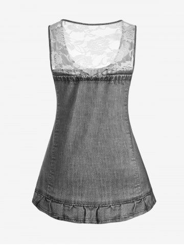 m*****143D Denim Print Lace Panel Tank Top and 3D Lace Up Jean Print Capri Leggings Plus Size Summer OutfitColor: BLACKI really love this outfit. only thing is the size is a little big so if you mostly wear a extra large get a large