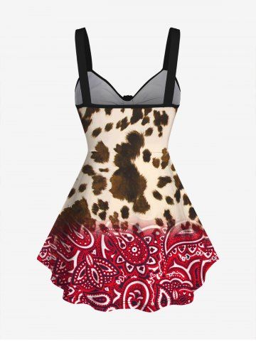 Graphic Tanks > Plus Size Leopard Paisley Ombre Print Cinched Tank Top