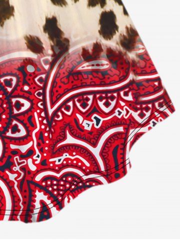 Plus Size Leopard Paisley Ombre Print Cinched Tank Top - Light Coffee - 1x