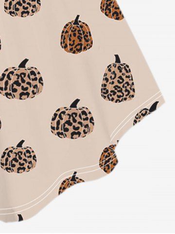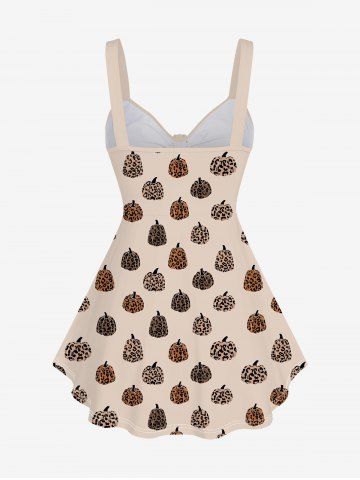 Plus Size Leopard Pumpkin Print Cinched Backless Tank Top - Light Coffee - 1x