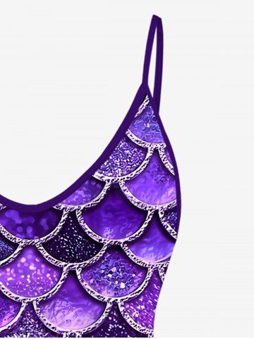 Plus Size Mermaid Print Glitter Cami Top(Adjustable Shoulder Strap) - Purple - 1x