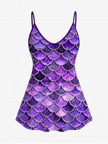 Plus Size Mermaid Print Glitter Cami Top(Adjustable Shoulder Strap) - Purple - 4x