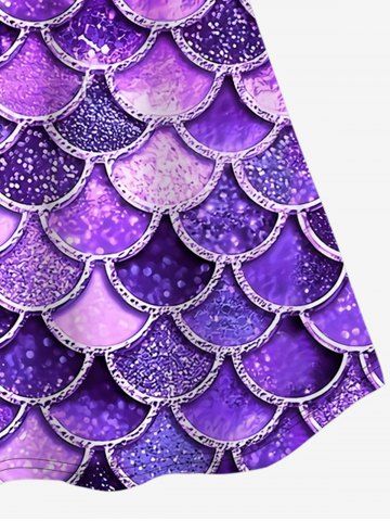 Plus Size Crisscross Mermaid Fish Scale Print A Line Dress