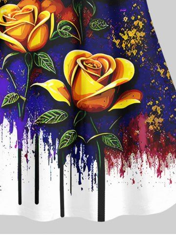 Plus Size Rose Flower Paint Drop Sequins Print Cami Top(Adjustable Shoulder Strap) - Multi-a - Xs